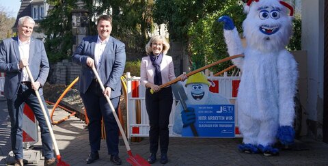 So schnell, dass er sich selbst überholt: Noch früher als geplant buddelt der JETI in Troisdorf-Mitte und bringt den Bürgern turboschnelles Highspeed-Internet und Breitbandanschlüsse.