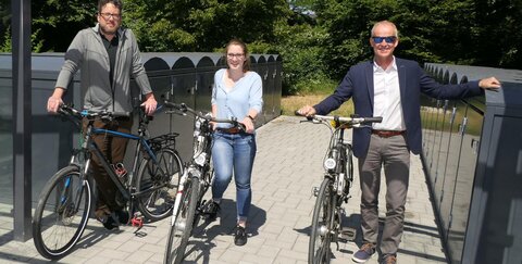 Begleitet von den zuständigen Mitarbeitern aus dem Amt für Straßenbau, Erschließungsbeiträge und Verkehr, Daniel Euler und Tanja Meis, fuhr er mit dem Rad nach Spich und testete die praktischen Boxen. Die Gesamtkosten von 130.000 Euro für Planung, Aufbau und Stahlelemente der Anlage, werden zu 90% aus den Fördermitteln „Nahmobilität“ des Landes NRW finanziert. Die Nachfrage nach sicheren und wetterfesten Abstellmöglichkeiten ist groß, es gibt schon eine Warteliste. Infos im Rathaus bei Marita Wissmann, Tel. 02241/900-701, Mail: wissmannm@troisdorf.de.