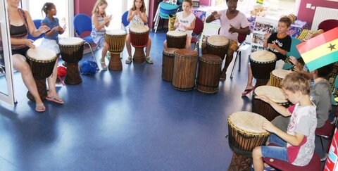 Aber auch das Leben in Ghana, der Alltag und die Kultur wurden den Kindern mit pädagogischem Gespür nahe gebracht. Die Kinder trommelten, sangen, tanzten, kochten und lernten afrikanische Kinderspiele kennen. Wer bisher wenig mit Musik und Rhythmus in Berührung gekommen war, konnte sich in dem Kurs mit Spaß und ohne Druck dem Trommeln und Tanzen nähern.