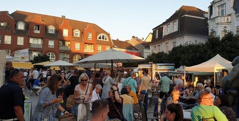 Der überaus beliebte Abendmarkt geht mit 14 Speise- und Getränkeständen in die erste Runde 2022 und findet am Freitag, 06. Mai 2022, von 16 bis 22 Uhr auf dem Fischerplatz, Troisdorf-Mitte,