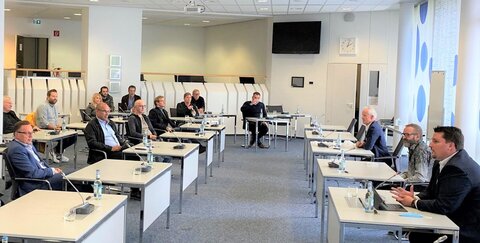 Bürgermeister Alexander Biber und der Technische Beigeordnete Walter Schaaf begrüßten kürzlich 20 ortsansässige Architekten, Bauträger und Vermessungsingenieure zu einem Informationstreffen im Troisdorfer Rathaus.