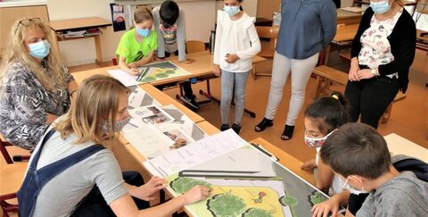 Ende August war es dann soweit. Irene Selmani vom Jugendamt und die für den Spielplatzbau zuständige Landschaftsarchitektin Suzanne Schwirian vom Amt für Umwelt-und Klimaschutz besuchten die Kinder in der Trogata und zeigten den Nachwuchsarchitektinnen und -architekten die endgültigen Ausführungspläne, die anhand ihrer Wünsche und Anregungen umgesetzt wurden.