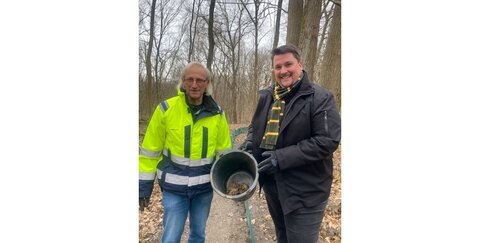 Einer der Unterstützer vor Ort war jetzt Bürgermeister Alexander Biber, der gemeinsam mit Dr. Hans Bendl aus dem Troisdorfer Amt für Umwelt- und Klimaschutz frühmorgens die Kröten einsammelte und über die Asselbachstraße in den Wald transportierte. Vor dort aus begeben sie sich zu den Laichgewässern, um dort für Nachkommen zu sorgen. Die Tiere halten sich einige Wochen an den Gewässern auf.