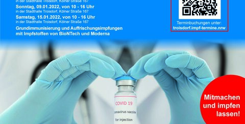 Außerdem findet ein weiterer Impftermin des mobilen Impfteams des Rhein-Sieg-Kreises am Dienstag, 4. Januar 2022, von 11 bis 17 Uhr in der Stadtbibliothek Troisdorf, Kölner Str. 69-81 statt.
