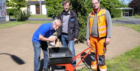 Zunächst werden die Flächen vorbereitet. In einem zweiten Arbeitsschritt erfolgt dann die Einsaat. So wie jetzt an der Ecke Alemannenstraße/Am Wehrwasser in Sieglar. Zunächst wurde ein Zierapfel gepflanzt. Zur Einsaat der Wiese, die ein Mitarbeiter des Baubetriebsamtes erledigte, kamen auch Dr. Hans-Bernd Bendl vom Umweltamt und Jörg-Olaf Jansen vom Imkerverein Troisdorf.