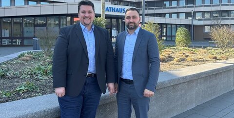 Gratulation zur Wahl: Bürgermeister Alexander Biber und Oguzhan Aytac