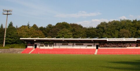 Seit Ende letzten Jahres waren die Wanderwege und Zufahrtsstraßen rund um das Aggerstadion in Troisdorf-Mitte aus Sicherheitsgründen gesperrt worden. Die vier Betonmasten für das Flutlicht im Stadion waren marode und es bestand laut einem Sachverständigen die Gefahr, dass bei starkem Sturm ein Mast umkippen und Passanten verletzen oder Fahrzeuge demolieren könnte.