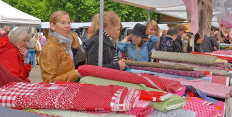 Wer gerne mit Nadel und Faden umgeht, findet beim Deutsch-Holländischen Stoffmarkt in Troisdorf an rund 100 Ständen eine kaum überschaubare Vielfalt an Stoffen und Zubehör. Gleichgültig ob für Kinderkleidung oder ein exklusives Kostüm, ob man Polstermöbeln einen neuen Look verpassen oder die Fensterdekoration auf einen modischen Stand bringen möchte - der Deutsch-Holländische Stoffmarkt bietet das Material dazu