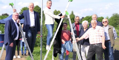 Im Beisein von Bürgermeister Klaus-Werner Jablonski, Landrat Sebastian Schuster, dem ehemaligen Troisdorfer Bürgermeister und Bundestagsabgeordneten Uwe Göllner und dem Präsidenten des Kreissportbundes, Wolfgang Müller, enthüllte Anne Nöbel das Straßenschild in Troisdorf-West, das an ihren Vater Dr. Wilhelm (Wim) Nöbel erinnert.