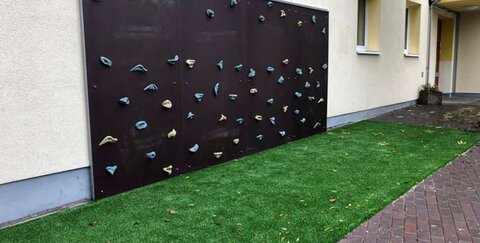 Die Kinder der Janosch-Grundschule in Troisdorf-Oberlar freuen sich jetzt über eine neue Kletterwand. Die alte Wand war von den Kindern oft genutzt worden und in die Jahre gekommen. Die Fallschutzplatten vor der Kletterwand mussten ebenfalls ersetzt werden. Sie wurden kurzerhand entfernt, die Fläche wurde ausgekoffert und es wurde ein fugenloser Fallschutzteppich eingebaut. Die alte Kletterwand wurde von einem Tischlerfachbetrieb abgenommen und saniert. Auf neu angefertigte Platten wurden die Klettergriffe wieder montiert und die gesamte Anlage vor Ort fachgerecht befestigt. Das Amt für Umwelt- und Klimaschutz hat die Maßnahme mit Fördermitteln des Landes NRW und unter Beteiligung der Schulleitung umgesetzt.