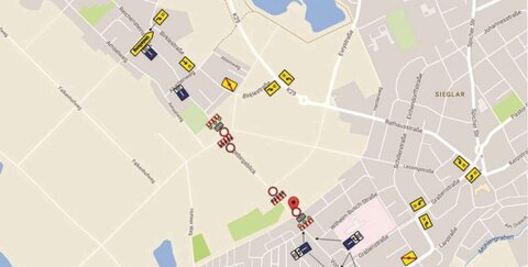 Dann werden Rembrandtstraße, Wilhelm-Busch-Straße und Reichensteinstraße zu Sackgassen. Die Umleitung erfolgt über Im Kirchtal, Grabenstraße und Rathausstraße nach Kriegsdorf.