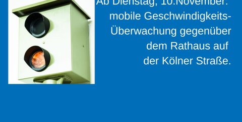 Ab Dienstag, 10.11., wird auf der Kölner Straße geblitzt.