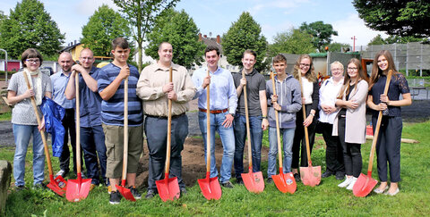 „Das gemeinsame Pflanzen des Baums ist ein Zeichen für Zusammenhalt und Beständigkeit in der Verwaltung, aber auch für gemeinsames Anpacken und für wachsende Kenntnisse und Erfahrungen in der Ausbildung“, erläuterte Eschbach bei der Pflanzaktion. Die jungen Frauen und Männer schaufelten dann auch ausdauernd beim Einpflanzen, zu dem sogar kurz die Sonne erschien. Drei Mitarbeiter des städtischen Bauhofs, die das Pflanzloch vorbereitet und den Baum angeliefert hatten, legten dann letzte Hand an.