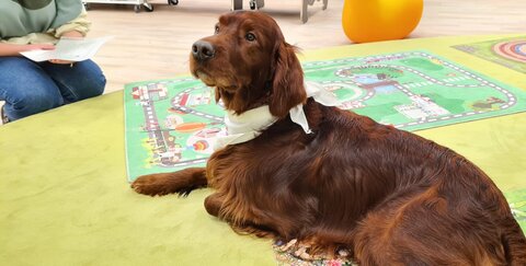 Vorlesehund Milow in der Stadtbibliothek im City Center