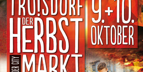 Am Wochenende 9./10. Oktober 2021, von 11 bis 19 Uhr, ist die Troisdorfer Innenstadt wieder kunterbunte Festmeile, passend zur Jahreszeit mit dem beliebten Herbstmarkt in der Fußgängerzone und gleichzeitig mit dem Erntedankmarkt auf Burg Wissem. Am 10. Oktober ist obendrein verkaufsoffener Sonntag von 13 bis 18 Uhr. Mehr als 30 Verkaufsstände bereichern den Herbstmarkt und die vielfältigen Angebote des Einzelhandels; mehr als 50 Stände sind es auf Burg Wissem.