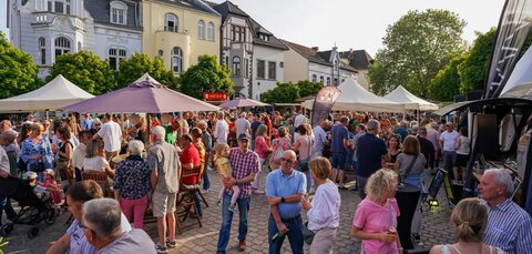 Der Abendmarkt findet von Mai bis Oktober je am ersten Freitag des Monats auf dem Fischerplatz in Troisdorf-Mitte statt.