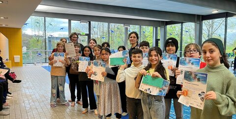 16.04.2024: 45 Grundschulkinder erwerben Seepferdchen- und Bronzeabzeichen