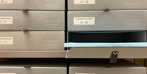 Unter diesem Projektnamen wurde mit Unterstützung von Fördermitteln des Bundes die zeitgeschichtliche Sammlung des Stadtarchivs Troisdorf für die Zukunft fachgerecht gesichert.
