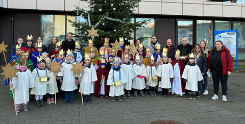 Mädchen und Jungen aus zwölf Troisdorfer Pfarrgemeinden haben das Rathaus besucht, um die Segenswünsche der Sternsinger zu überbringen. Sie wurden von der Ersten Beigeordneten Tanja Gaspers herzlich im Foyer empfangen. Nachdem gemeinsam mit Eltern und Angehörige Sternsinger-Lieder angestimmt wurden, gab es im Anschluss noch die Segnung für das Rathaus. Mit süßer Wegzehrung und Spendenumschlägen für die kleinen Königinnen und Könige ging es dann zum nächsten Ziel.