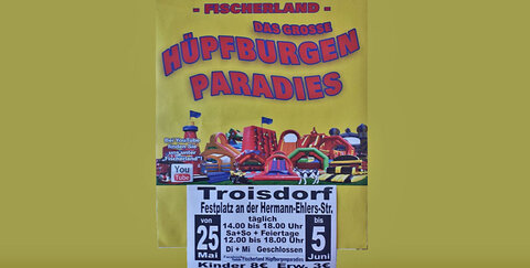 Das "Hüpfburgen-Paradies" ist auf dem Festplatz an der Hermann-Ehlers-Straße aufgebaut. Vom 25.05. bis zum 05.06.2017 findet dort ein großer Spaß für Kinder (aber auch Erwachsene) statt.