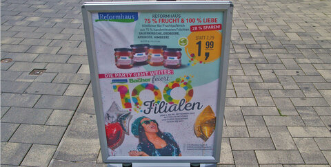 Bacher möchte mit euch weiterhin 100 Filialen feiern und übersät euch dafür den ganzen September hindurch mit tollen Angeboten und Aktionen! Zum Beispiel köstlicher Bio-Fruchtaufstrich von der "Reformhaus" Eigenmarke für nur 1,99€.