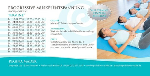 - Preis - Teilnahmegebühr pro Abend 12,- €. Mitzubringen sind ein Handtuch, eine Decke und wenn vorhanden eine Gymnastikmatte.