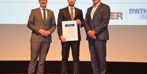 V.l.n.r.: Prof. Christian Hopmann, Preisträger Lukas Seifert und Ulrich Reifenhäuser