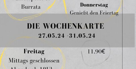 28.05.2024: 27.-31.(29.)5.2024 Wochenkarte Mittags bei Little Fork im Restaurant Schneider junior