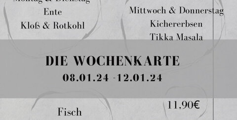 08.01.2024: 8.-12.1.2024 Wochenkarte Mittags bei Little Fork im Restaurant Schneider junior