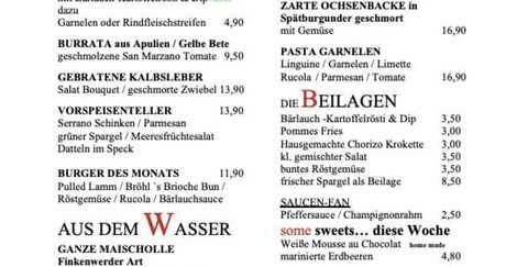 Aktuelle Speisekarte im Restaurant Schneider junior