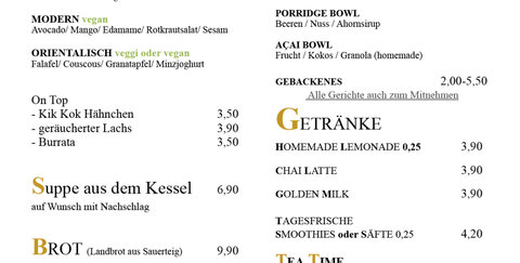 Und zusätzlich gibt es, wie immer, jeweils wechselnde Wochenkarten mit aktuellen Saison- und Tagesgerichten. Lecker :-)