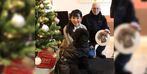 18.12.2023: Viel Freude bei der Überreichung des Brandmal-Kunstwerks: Die Pudeldame Andra spielte die Hauptrolle im Yen-Yen