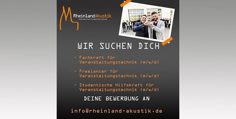 Bei Interesse könnt ihr eure Bewerbung an info@rheinland-akustik.de schicken!