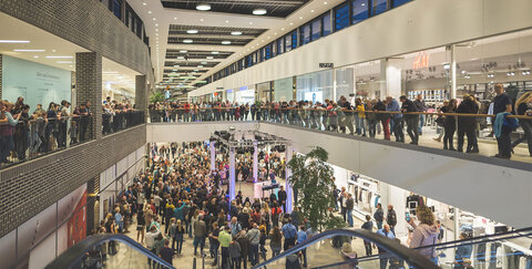 Außerdem wurden die Ein- und Ausgänge des Einkaufszentrums mit rotem Teppich und schicken, goldenen Tensatoren ausstaffiert.