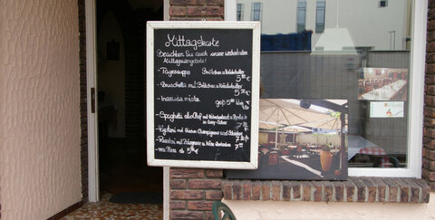 - Tagessuppe, Brötchen mit Kräuterbutter, 5,50 €