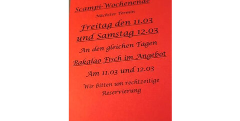 Am 11.03. & 12.03.2016 findet wieder ein Scampi Wochenende statt!