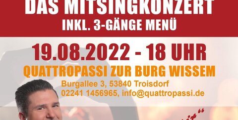 das Mitsing-Konzert inkl. drei Gänge Menü im Quattro Passi.