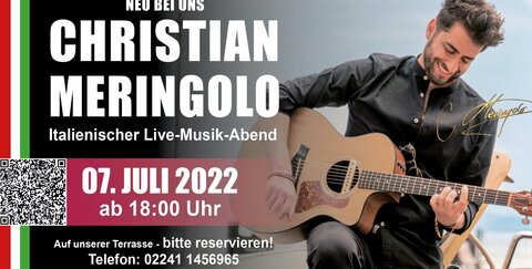 Italienische Live Musik am 07.07.2022 ab 18:00 Uhr auf der Terrasse des QuattroPassi.