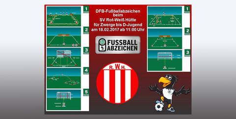 Am 18.02.2018 wird auf der Platzanlage vom SV Rot-Weiß Hütte von den Zwergen bis zur D-Jugend gedribbelt, gepasst, geflankt, geköpft und geschossen was das Zeug hält um im Wettbewerb um das DFB-Fußballabzeichen möglichst viele Punkte zu sammeln.