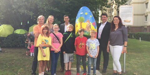 Die Skulptur wurde von dem Troisdorfer Künstler Rolf Mallat gemeinsam mit fünf Mieterkindern im Alter von neun bis elf Jahren gestaltet. „Neben einem ansprechenden und individuellen Erscheinungsbild war uns der lokale Bezug wichtig, weshalb wir an mehreren Unternehmensstandorten lokale Künstlerinnen und Künstler um ihre Ideen gebeten und mit ihnen zusammengearbeitet haben“, so Geschäftsführer Uwe Sahle. „Wir freuen uns deshalb, dass wir Rolf Mallat für das Kunstprojekt an unserem Standort in Troisdorf gewinnen konnten.“ Das Objekt ist eines von insgesamt 17 Holzschuh-Kunstskulpturen, die im Jubiläumsjahr bundesweit an Standorten von Sahle Wohnen aufgestellt werden - jede davon individuell von einer Künstlerin oder einem Künstler gestaltet, oftmals in einer Gemeinschaftsaktion mit Mieterkindern.