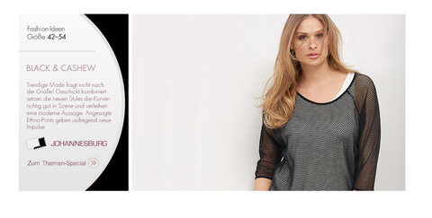 Geschickt kombiniert setzen die neuen Styles die Kurven so richtig gut in Szene und verleihen eine moderne Aussage. Angesagte Ethno-Prints geben aufregend neue Impulse.
