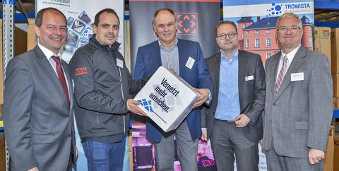 Bei einem Unternehmerfrühstück des Unternehmer-Clubs pro Troisdorf und der Wirtschaftsförderung TROWISTA am 4. April stellten die Geschäftsführer Norbert und Andreas Schlimgen, Sohn des Firmengründers, ihr Unternehmen vor.