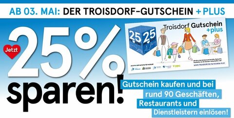 Auch bei uns erhaltet ihr mit dem Troisdorf Gutschein +plus 25% Rabatt.
