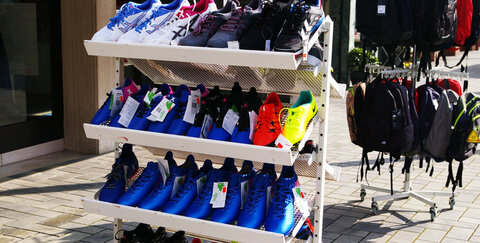 Einige Sportschuhe des Sortiments sind reduziert. Die Farbauswahl umfasst grelle und auffällige Farben aber auch schlichte Modelle.