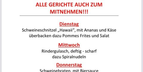 Tagesgerichte für die diese Woche im StadtBierhaus