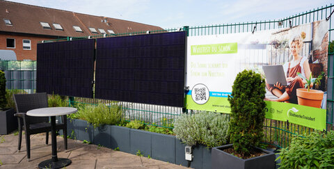 Wer zum Schmökern die Dachterrasse der Stadtbibliothek aufsucht, wird es direkt entdecken – das Balkonkraftwerk, dass die Stadtwerke Troisdorf der Bücherei geliehen haben.
