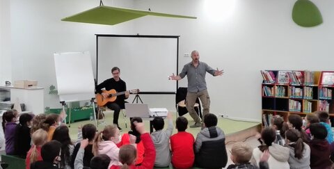Die beiden vielseitig begabten Künstler Hans-Christian Schmidt und Andreas Nemet begeisterten mit Gesang, schauspielerischem Talent und ihren Büchern „Käpt’n Piet hat Appetit“ oder „Eine Wiese für alle“. Viel Wissenswertes boten die beiden polnischen Autorinnen Maria Mazurek und Marcin Wierzchowski aus ihrem Buch „Avas Traum oder wie das Gehirn funktioniert“. Der aus Hamburg stammende Schriftsteller und Illustrator Torben Kuhlmann las aus seinem Buch „Einstein“ vor. Live fertigte er eine Zeichnung seiner berühmten Maus an, die er der Bibliothek freundlicherweise überließ.