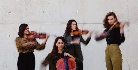 Am Sonntag, 16. Oktober, um 19 Uhr, tritt das Velvet Quartet im Kunsthaus auf. Die vier jungen Musikerinnen aus der Türkei, Lettland und Katalonien haben sich in Essen zusammengefunden und spielen auf einzigartigen Instrumenten, die von einem der größten Geigenbauer unserer Zeit aus dem Holz eines einzigen Baumes gefertigt wurden und dem herausragenden Quartett von der Stiftung der Folkwang-Universität zur Verfügung gestellt werden. Auf dem Programm stehen der Quartettsatz c-moll von Franz Schubert und die Uraufführung des Werks „con un respiro di tristezza... – Tangofetzen in sieben Fragmenten“ des Komponisten Wilfried Maria Danner. Das Frauen-Quartett wird hierbei ergänzt vom Akkordeonisten Kristián Palágyi. (Der Eintritt ist frei).