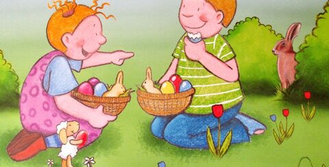 Oster-Vorlesen in der Bibliothek Sieglar: Zwei Kinder bereiten Ostern vor