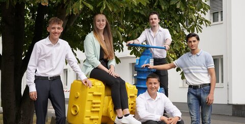 Letztes Jahr im August haben wieder fünf Nachwuchskräfte ihre Ausbildung bei den Stadtwerken Troisdorf begonnen: Florian Schmermbeck, Sarah Schmitz, Maximilian Fuchs (vorne), Yannic Kleinwächter (hinten) und Benjamin Mamuti (v.l.n.r.).